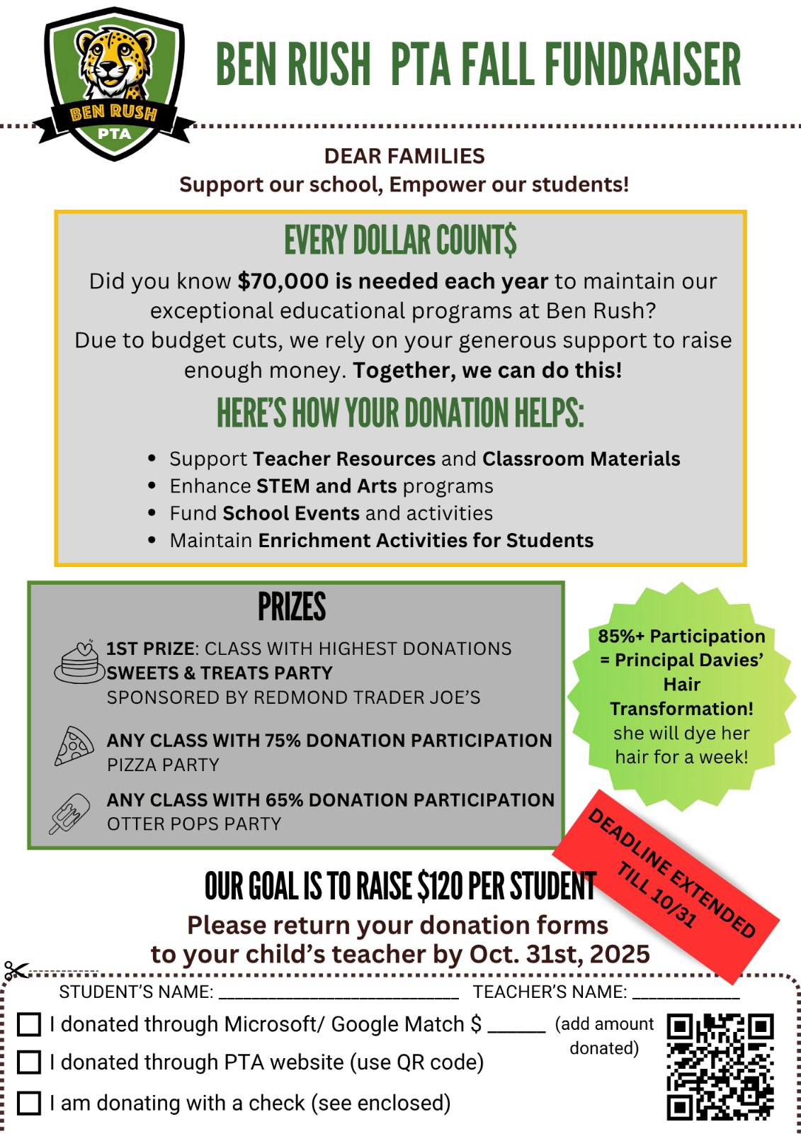 Great News!! The PTA Fall Fundraiser has been extended till October 31st, 2025. See the Flyer below for important details.